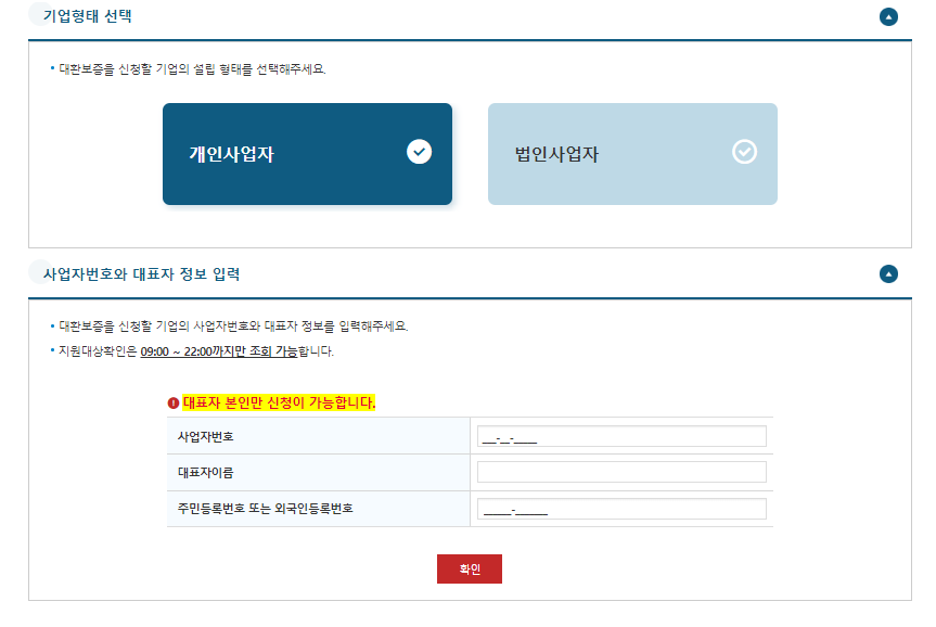 - 개인사업자 또는 법인 소기업