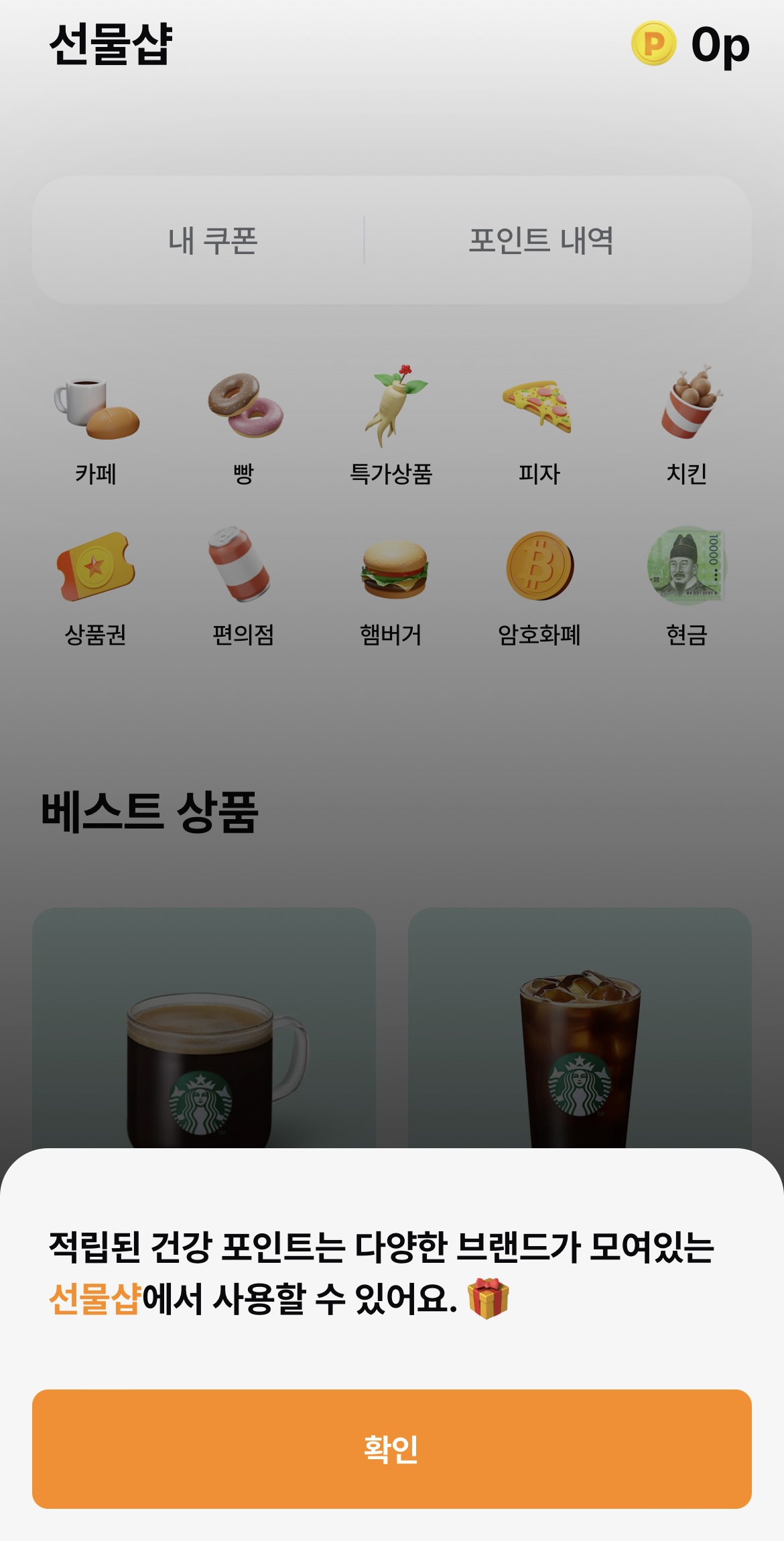 - 선물샵에서 포인트로 원하는 상품이나 포인트에 맞는 현금으로 교환이 가능합니다.
